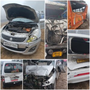 दृश्यता शून्य बनी जानलेवा: फरीदपुर हाईवे पर भीषण टक्कर, रोडवेज की तीन बसें व दर्जनों वाहन क्षतिग्रस्त