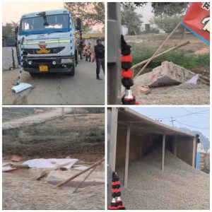 तेज रफ्तार और ओवरलोडिंग बनी हादसे की वजह, बजरी से भरा कैंटर पलटा, कब्रिस्तान की दीवार ध्वस्त