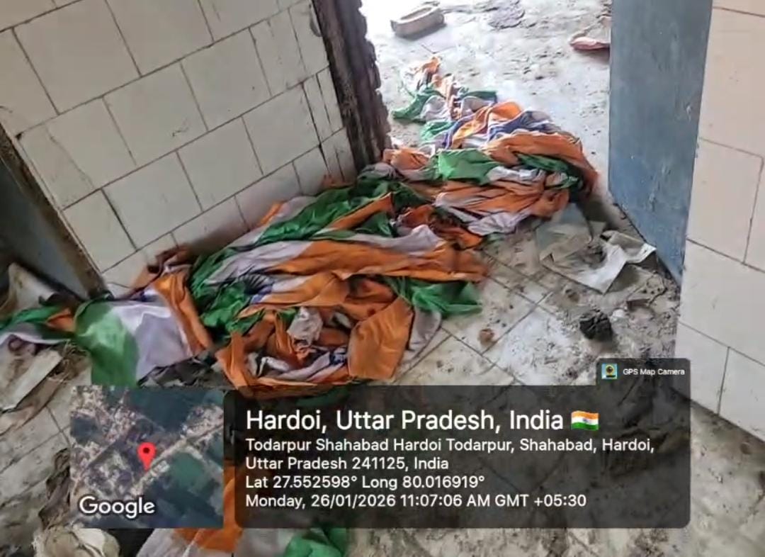 हरदोई के टोंडरपुर में तिरंगे का अपमान, गंदगी भरे शौचालय में फेंका गया राष्ट्रीय ध्वज