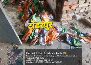 हरदोई! हरदोई जनपद के विकासखंड टोंडरपुर से राष्ट्रीय सम्मान को ठेस पहुंचाने वाला एक गंभीर मामला सामने आया है। यहां राष्ट्रीय तिरंगे के खुलेआम अपमान की तस्वीरें सामने आने के बावजूद जिम्मेदार अधिकारी और कर्मचारी पूरी तरह मौन साधे हुए हैं। मामला टोंडरपुर ब्लॉक अंतर्गत बाल विकास परियोजना से जुड़ा बताया जा रहा है।