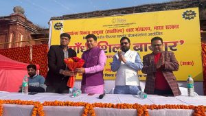 इस अवसर पर सहायक निदेशक हस्तशिल्प पुलकित जैन ने कार्यालय विकास आयुक्त हस्तशिल्प, वस्त्र मंत्रालय भारत सरकार द्वारा संचालित विभिन्न योजनाओं की जानकारी दी। उन्होंने बताया कि इन योजनाओं का उद्देश्य शिल्पियों को प्रशिक्षण, विपणन और वित्तीय सहायता प्रदान कर उन्हें स्वावलंबी बनाना है। उन्होंने शिल्पियों से योजनाओं का अधिकतम लाभ उठाने का आह्वान किया।