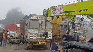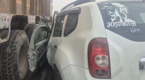 सिंधौली चौराहे पर भीषण हादसा: ट्रक ने कार को मारी टक्कर, चालक फरार