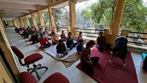 प्रथम सत्र में खेल जगत फाउंडेशन के श्री रतन गुप्ता ने योग अभ्यास के दूसरे दिन छात्राओं को विभिन्न योग मुद्राओं की विधि विस्तार से समझाई और उनका अभ्यास कराया। उन्होंने सूर्य नमस्कार का नियमित अभ्यास भी करवाया, जिससे छात्राओं में ऊर्जा और आत्मविश्वास का संचार हुआ।
