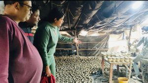 निरीक्षण के दौरान टीम ने देखा कि बेहद सीमित संसाधनों के बावजूद परिवार बड़ी संख्या में दीये तैयार कर रहा है। आंगन में कतारबद्ध धूप में सूखते दीये और पूरे परिवार की मेहनत ने अधिकारियों को प्रभावित किया। मिट्टी गूंथने से लेकर आकार देने और सुखाने तक की पूरी प्रक्रिया को समझा गया।
