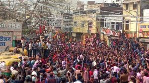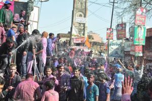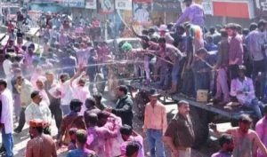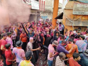 फूलों की बारिश, डीजे की धुन और हुरियारों का हुड़दंग – हर गली में ‘जय श्रीराम’