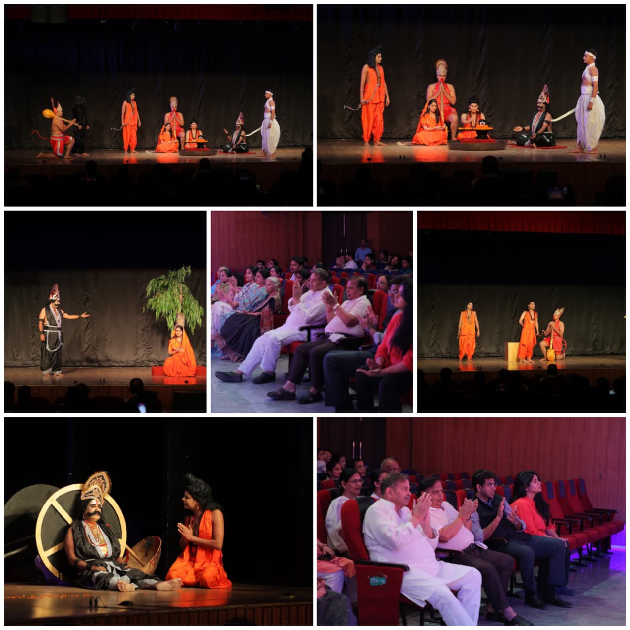 नाटक में रावण की भूमिका विनायक श्रीवास्तव और राम की भूमिका गौरव कार्की ने निभाई। लक्षमण के रूप में मानेश यादव और सीता के रूप में अदिति भारद्वाज दर्शकों के सामने आए। हर्ष यादव (अनरण्य) शिवम् यादव (जामवंत), भूपेश (हनुमान), निशांत (सुग्रीव), शिवा शर्मा (दसग्रीव और विभीषण),और हिरदयांश (सैनिक) ने भी अभिनय से प्रभावित किया। नाटक में दीपकांत जौहरी (तबले), सूर्यकान्त चौधरी (वायलिन), अनुग्रह सिंह (की-बोर्ड) ने भी अपने वाद्ययंत्रों के साथ नाटक में अपनी उपस्थिति दर्ज कराई। साउंड संचालन अरुण सैनी और जफर ने और प्रकाश संचालन की जिम्मेदारी जसवंत सिंह ने निभाई। इस अवसर पर एसआरएमएस ट्रस्ट के संस्थापक एवं चेयरमैन देव मूर्ति जी, आशा मूर्ति जी, आदित्य मूर्ति जी, ऋचा मूर्ति जी, देविशा मूर्ति, उषा गुप्ता, डा. रजनी अग्रवाल, डा. प्रभाकर गुप्ता, डा. शैलेश सक्सेना, डा. रीता शर्मा और शहर के गणमान्य लोग मौजूद रहे।