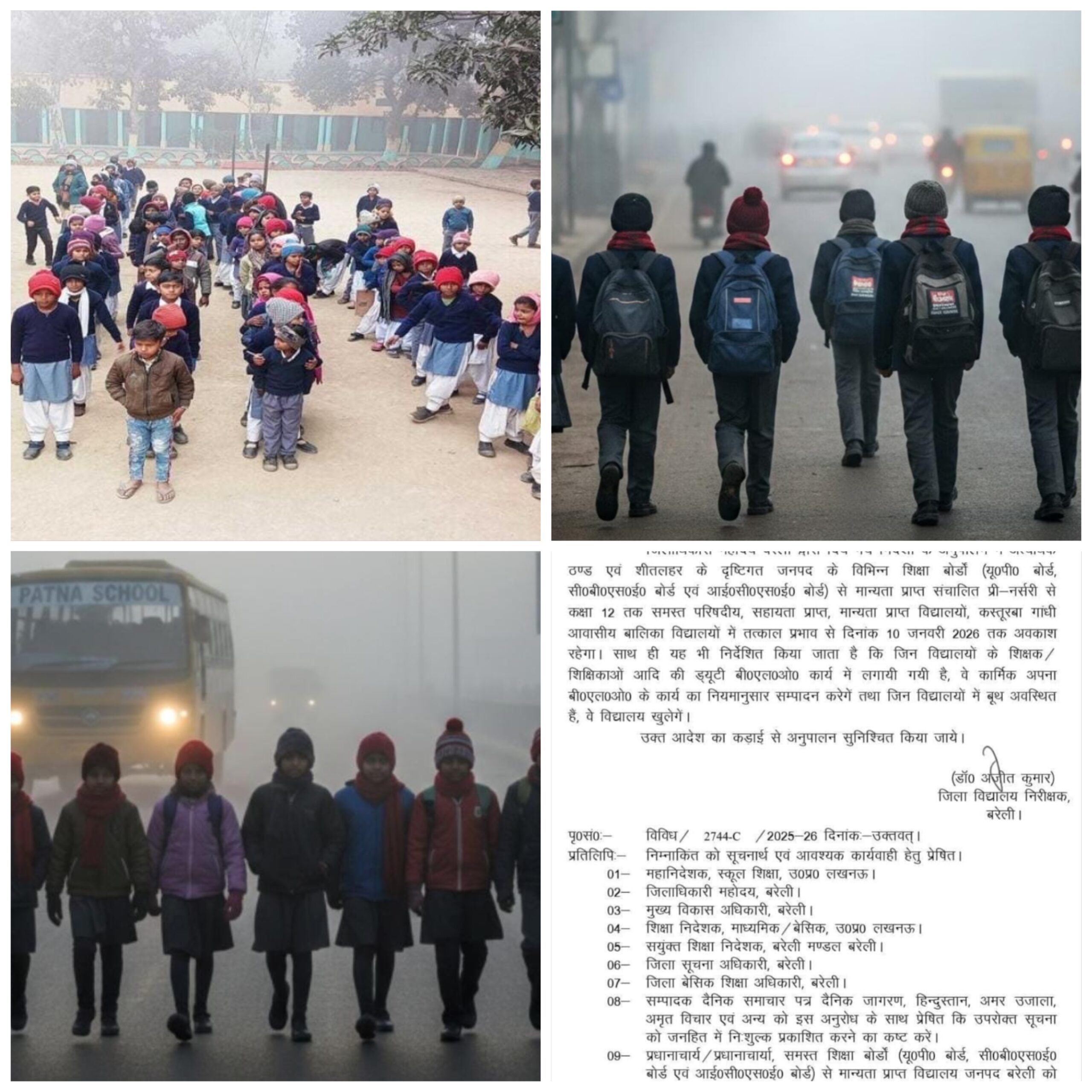बरेली मे भीषण ठंड के चलते 10 जनवरी तक सभी स्कूल बंद