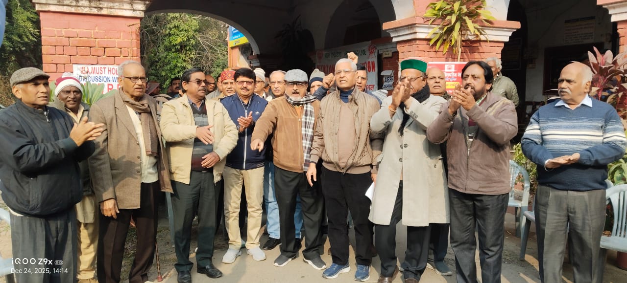 कड़ाके की ठंड में पेंशन अपडेट की मांग, बैंक सेवानिवृत्तों का धरना जारी