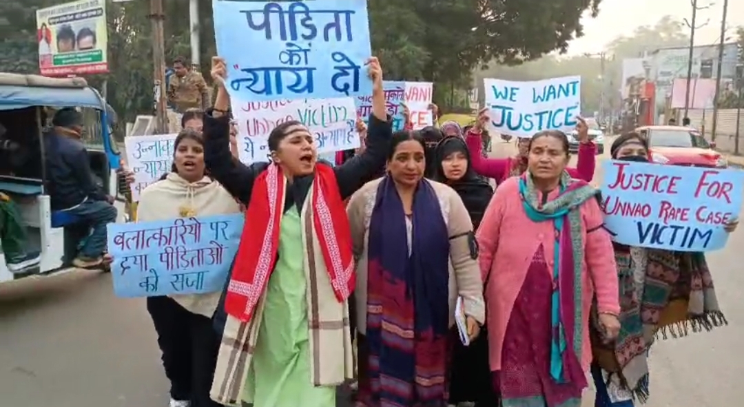 उन्नाव रेप केस में कुलदीप सेंगर की जमानत के विरोध में महिलाओं का जोरदार प्रदर्शन