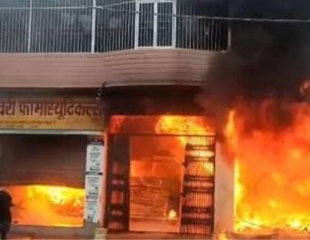 शॉर्ट सर्किट से घर और दुकानें धधकीं, पहली मंजिल पर फंसा परिवार, ग्रामीणों ने सीढ़ी लगाकर बचाई जान