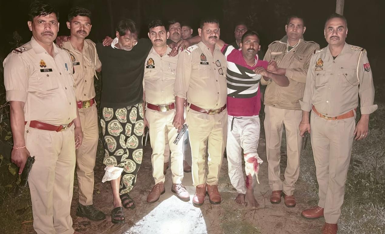 भोजीपुरा में पुलिस-बदमाशों के बीच मुठभेड़, दो वांछित गिरफ्तार जवाबी फायरिंग में दोनों के पैर में लगी गोली, अवैध असलाह व गौकशी के उपकरण